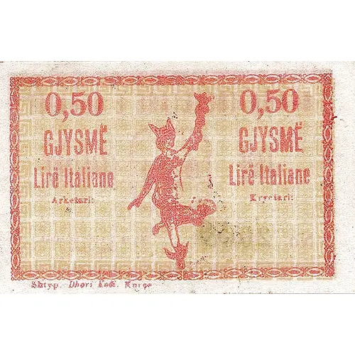 | Obverse lettering | 0,50 GJYSMË Lirë Italiane (Translation: Half Italian Lire) |