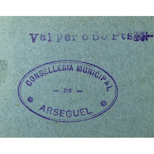 Val per 0`50 Pts CONSELLERIA MUNICIPAL DE ARSEGUEL (Translation: Voucher for 0.50 Pesetas Municipal Council of Arseguel) |