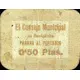 El Consejo Municipal de Benigánim PAGARA AL PORTADOR 0`50 Ptas. (Translation: The Municipal Council of Benigánim Will pay the bearer 0.50 Pesetas) |