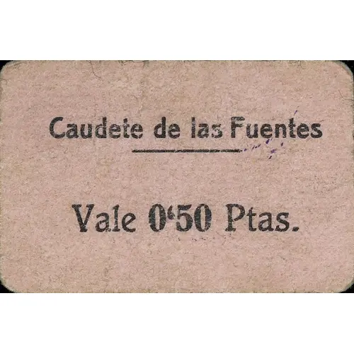 | Obverse lettering | Caudete de las Fuentes Vale 0`50 Ptas. (Translation: Caudete de las Fuentes It`s worth 0.50 Pesetas) |