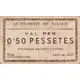 AJUNTAMENT DE NALECH VAL PER 0`50 PESSETES D`ÚS FORÇOS SOLAMENT A NALECH MAIG DEL 1937 (Translation: City Council of Nalech Voucher for 0.50 Pesetas Mandatory use only in Nalech May 1937) |