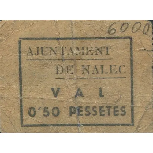 AJUNTAMENT DE NALEC VAL 0`50 PESSETES (Translation: City Council of Nalec Voucher 0.50 Pesetas) |