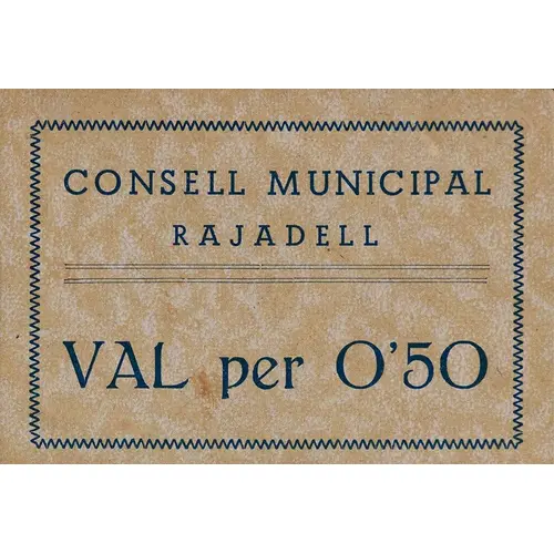 CONSELL MUNICIPAL RAJADELL VAL per 0`50 (Translation: Municipal Council Rajadell Voucher for 0.50) |