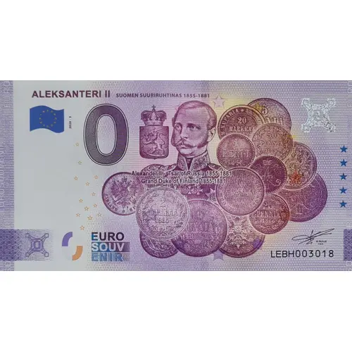 ALEKSANTERI II SUOMEN SUURIRUHTINAS 1855-1881 EUROSOUVENIR 2020-3 EURO SOUV ENIR Alexander II - Tsar of Russia 1855-1881 Grand Duke of Finland 1855-1881 R. FAILLE C.E.O. LEBH |