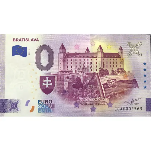 BRATISLAVA EUROSOUVENIR 2025-2 0 0 EURO SOUV ENIR R. FAILLE C.E.O. Bratislavský hrad Bratislava Castle EEAB (Translation: BRATISLAVA 2019-2 0 EURO SOUVENIR R.FAILLE Bratislava Castle Bratislava Castle EEAB005505) |