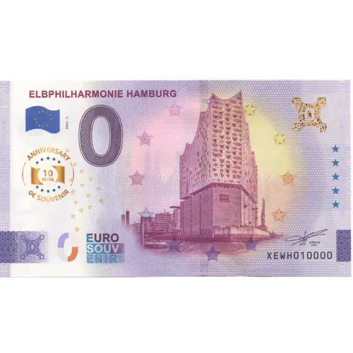 ELBPHILHARMONIE HAMBURG EUROSOUVENIR 2025-2 0 ANNIVERSARY 10 YEARS 0€ SOUVENIR EURO SOUV ENIR R. FAILLE C.E.O. XEWH |