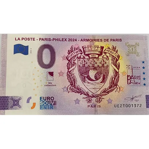 LA POSTE - PARIS-PHILEX 2024 - ARMOIRIES DE PARIS EUROSOUVENIR 2024-6 FLVCTUAT NEC MERGITVR Ma collection 30 mai au 1er juin 2024 PARIS Philex PARIS EURO SOUV ENIR R. FAILLE C.E.O UEZT |
