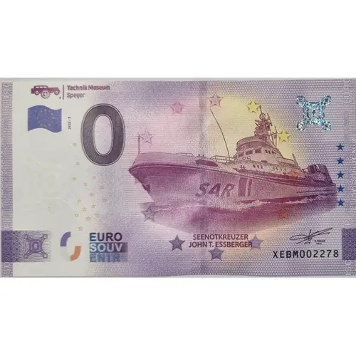| Obverse lettering | Technik Museum 2023 7 0 Speyer SAR EURO SOUV ENIR Seenotkreuzer John T. Essberger R. FAILLE |