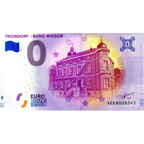 | Obverse lettering | (Translation: Troisdorf - Burg Wissem 2019-1 0 0 EURO SOUV ENIR R. FAILLE C.E.O.) |