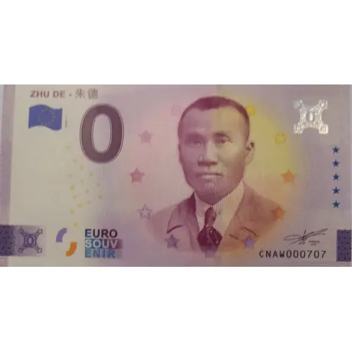 | Obverse lettering | ZHU DE - en caractères chinois 2024-1 0EURO SOUV ENIR R FAILLE C.E.O. CNAW |
