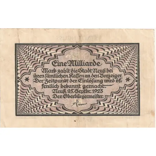 | Value | 1 000 000 000 Mark (1 000 000 000) |