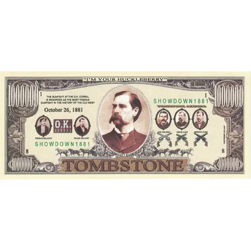 " I' M YOUR HUCKLEBERRY " 1000000 THE GUNFIGHT AT THE O.K . CORRAL IS REGARDED AS THE MOST FAMOUS GUNFIGHT IN THE HISTORY OF THE OLD WEST OCTOBER 26,1881 O.K. CORRAL SHOWDOWN 1881 TOMBSTONE |