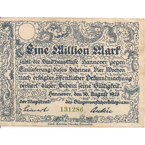 | صادرکننده | Hanover (notgeld), City of |
