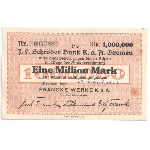 | Value | 1 000 000 Mark (1 000 000) |