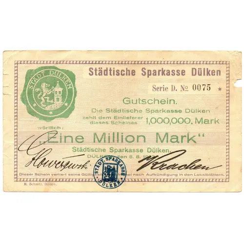 | صادرکننده | City of Dülken (Prussian province of Rhine) |