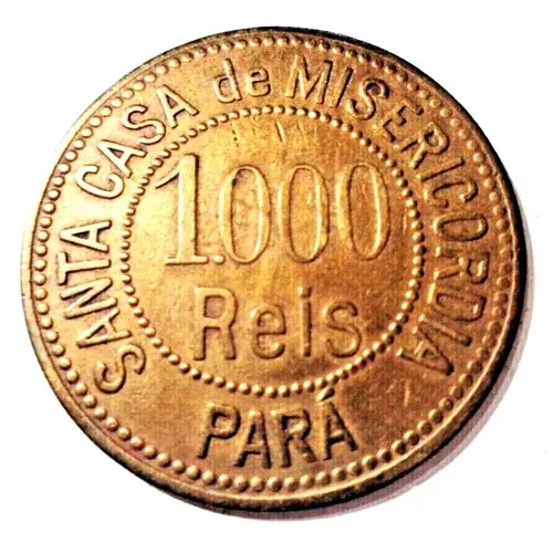 | Obverse lettering | SANTA CASA de MISERICORDIA 1.000 REIS PARÁ (Translation: Santa Casa de Misericordia (Holy House of Mercy) 1000 Réis Pará) |