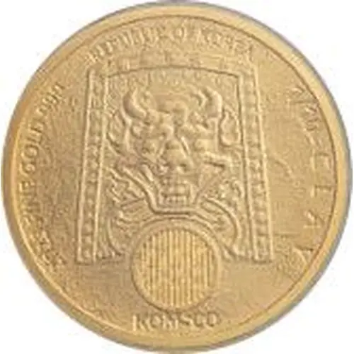 | Obverse description | Shield of Chiwoo Cheonwang above latent security feature and KOMSCO logo, surrounded by date, fineness, denomination and Republic of Korea |