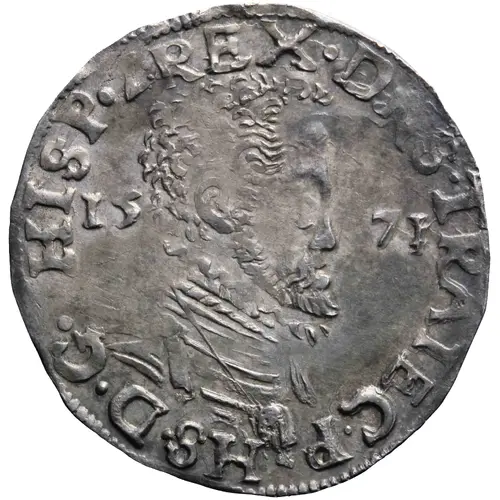 | Obverse lettering | PHS · D · G · HISP · Z · REX · DNS · TRAIEC 1571 (Translation: Philip, by God`s grace King of the Spaniards, Lord of Utrecht) |