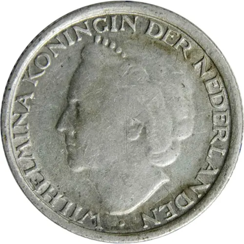 | Obverse description | Head of Queen Wilhelmina of the Netherlands facing left surrounded by text in Dutch. |