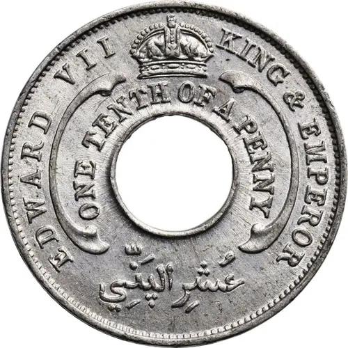 | Obverse lettering | EDWARD VII KING & EMPEROR ONE TENTH OF A PENNY عُشِر الپَنّي |