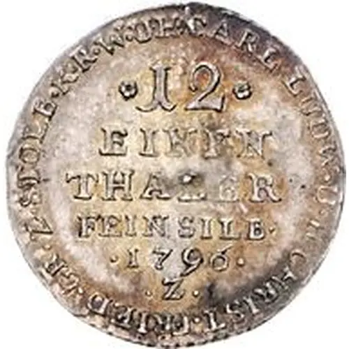 | Obverse lettering | CARL. LUDW. U. H. CHRIST. FRIED. GR. Z. STOLB. K. R. W. U. H. 12 / EINEN / THALER / FEIN SILB. |