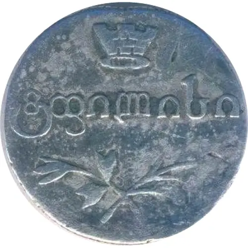 | 裏面の説明 | Denomination in Persian Dinars, but by Georgian lettering. ` რ ` = 100 Dinars Georgian inscription year composed by Georgian letters |