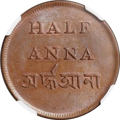 | 表面の説明 | Legend in English and Bengali: Ardha Aana |