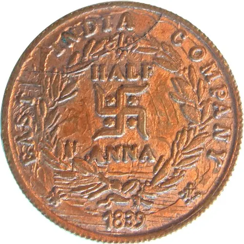 | Obverse lettering | EAST INDIA COMPANY HALF ANNA 1839 |