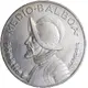 | Reverse description | The armoured bust with a helmet of Vasco Núñez de Balboa, a Spaniard, the first European who crossed the Isthmus and reached the Pacific by land, and the discoverer of the Perlas Archipelago (1513), facing left surrounded by value in letters and wreath, with the bust touching the rim below |