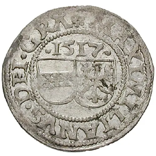 | Popis líce | Two shields of Austria and Carniola (Krain) under the date in a circle of pearls, legend around (starts 12h with a rosette) for `Maximilianus Dei Gratia`, circle of pearls around |
