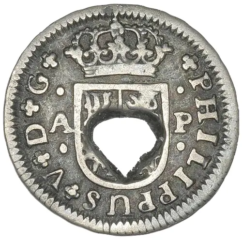 | نوشتههای روی سکه | +PHILIPPUS+V+D+G+ A P (Translation: Philippe V by the grace of God) |