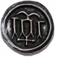 | Descrizione del dritto | Four capped vertical strokes with forked bases, the two central ones conjoined, joined crescents above, cross below. |