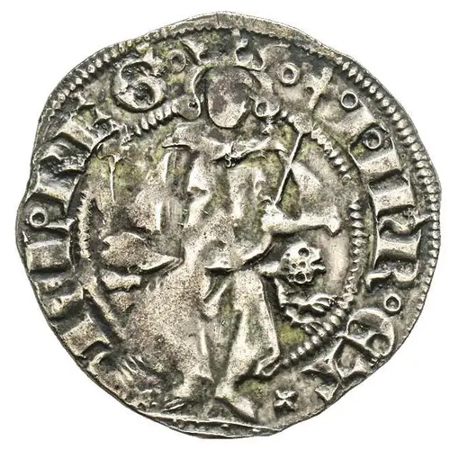 | Reverse description | Large cross intersecting legend. Fleur-de-lis in each canton. |