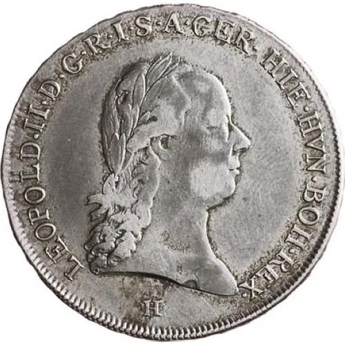 | Descrizione del dritto | Laureate portrait to the right. Legend around for `Leopoldus II Dei Gratia Romanorum Imperator Semper Augustus Germaniae Hierosolymae Hungariae Bohemiaeque Rex`. Mintmark below bust. |