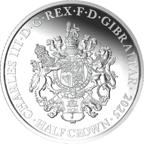 CHARLES III · D·G·REX · F·D· GIBRALTAR · 2025 · HALF CROWN (Translation: Charles III. By the Grace of God. Defender of the Faith. Gibraltar.) |