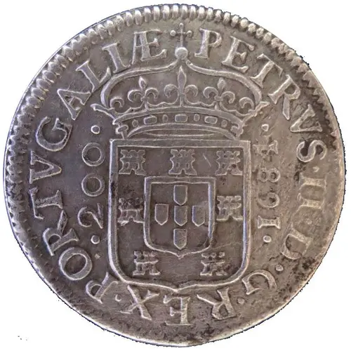 | Obverse lettering | PETRVS • II • D • G • REX • PORTUGALIÆ 200 1684 |