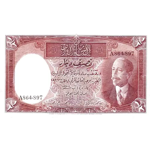 | Reverse lettering | GOVERNMENT OF IRAQ DINAR 1/2 DINAR CURRENCY NOTE ISSUED AND CONVERTIBLE INTO STERLING, IN ACCORDANCE WITH THE PROVISIONS OF LAW NO 44 OF 1931 BAGHDAD FOR THE IRAQ CURRENCY BOARD |