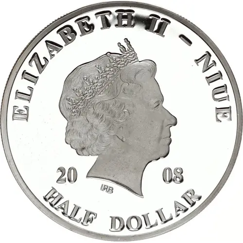 | Obverse lettering | ELIZABETH II - NIUE 20 08 IRB HALF DOLLAR |
