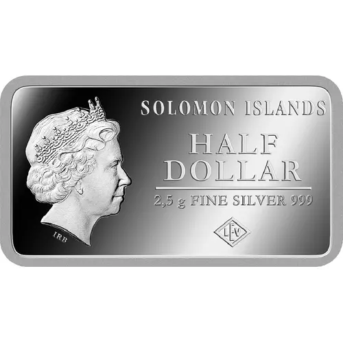 | Obverse lettering | SOLOMON ISLANDS HALF DOLLAR 2,5 g FINE SILVER 999 LEV IRB |