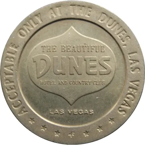 | Obverse lettering | THE BEAUTIFUL DUNES HOTEL AND COUNTY CLUB LAS VEGAS ACCEPTABLE ONLY AT THE DUNES, LAS VEGAS |