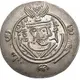 Facing bust of Umar, head right, wearing winged crown surmounted by star and crescent, inside single-dotted border, crescents with stars at 3, 6 and 9 o`clock `U` in lower left margin, `APD` in lower-right margin Pahlavi date (Jharvistst) | Mint mark |