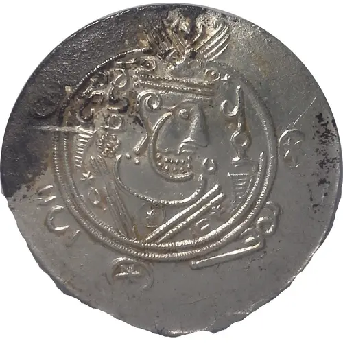 | Reverse description | Sasanian style fire altar with two attendants standing facing, crescents on their heads, both hands on sword hilt, inside triple dotted-border, crescents with stars at 3, 6, 9 and 12 o`clock, three pellets at the diagonals |