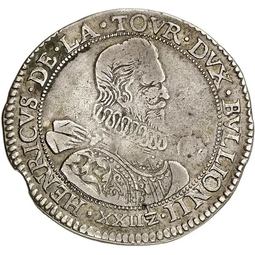 | Obverse lettering | HENRICVS DE LA TOVR DVX BVLLIONII XXII 1/z |