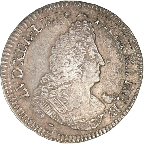 Bust of Louis XIV on the right, armored in the antique style. Legend starting at 19 h. |