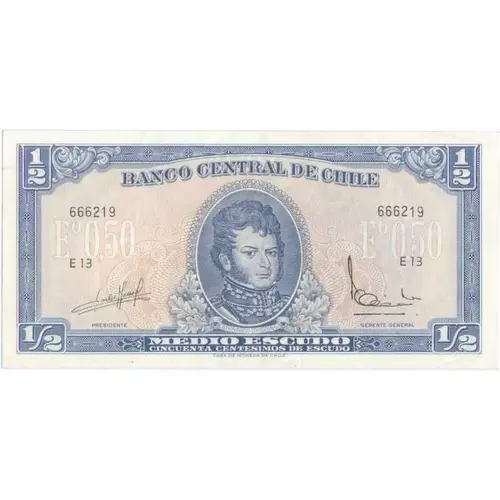| Obverse lettering | BANCO CENTRAL DE CHILE BERNARDO O`HIGGINS MEDIO ESCUDO CINCUENTA CENTESIMOS DE ESCUDO CASA DE MONEDA DE CHILE (Translation: Central Bank of Chile Bernardo O`Higgins Half Escudo Fifty Cents of Escudo Chile Mint) |