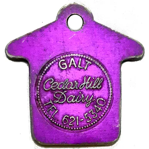 | Obverse lettering | GALT Cedar Hill Dairy TEL. 621-5340 |