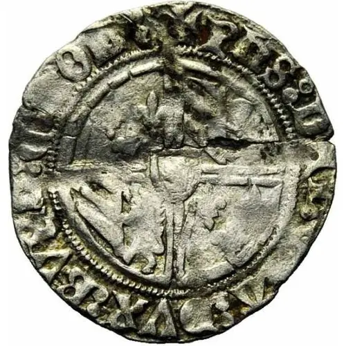 | Reverse description | Long cross pattée dividing legend, with rosette in diamond in center, and alternating fleur-de-lis and lions in the angles. |