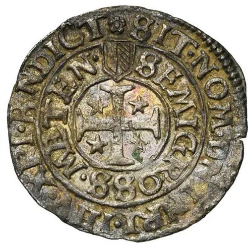 ✿ SIT · NOM · DNI NRI · IHV · XPI · BNDICT SEMIGROSS · METEN · (Translation: Blessed be the name of our lord Jesus Christ. 1/2 Groschen of Metz.) |