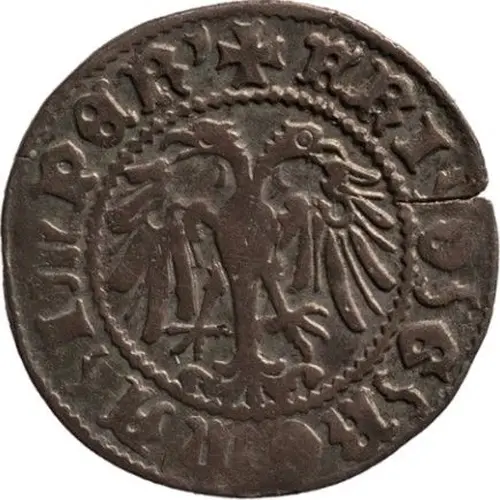| Reverse description | In the inscription area at 6 o`clock, the shield of Hans Wieland von Wesel (shield with 3 crescent moons; points to the left). Five-eagle coat of arms, below it the coats of arms of Carinthia and Styria. Inscription around the outside between two pearl circles. |