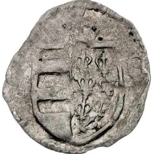 | Obverse description | Divided shield: left, three bars; right, seven lilies. Crown uppper and `D` to the right of shield. |
